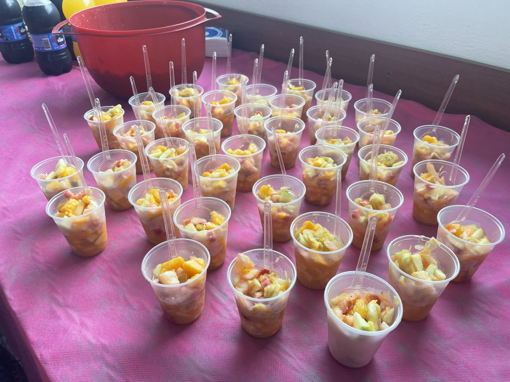 Os participantes do encontro de hoje desfrutaram de um café da manhã equilibrado e saudável, que incluiu salada de frutas, sanduíche natural e suco de frutas. Eles também puderam realizar aferição de glicose e de pressão arterial.