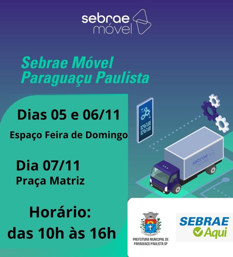 A unidade itinerante do Sebrae-SP estará em Paraguaçu Paulista nos dias 5, 6 e 7 de novembro, oferecendo atendimentos gratuitos e personalizados aos empreendedores locais. Nos dias 5 e 6, o Sebrae Móvel atenderá no Espaço Feira de Domingo, durante o Projeto Cidadania Itinerante. Já no dia 7 de novembro (quinta-feira), o veículo estará estacionado na Praça Matriz, das 10h às 16h.