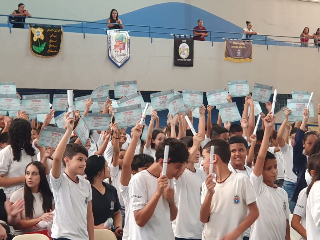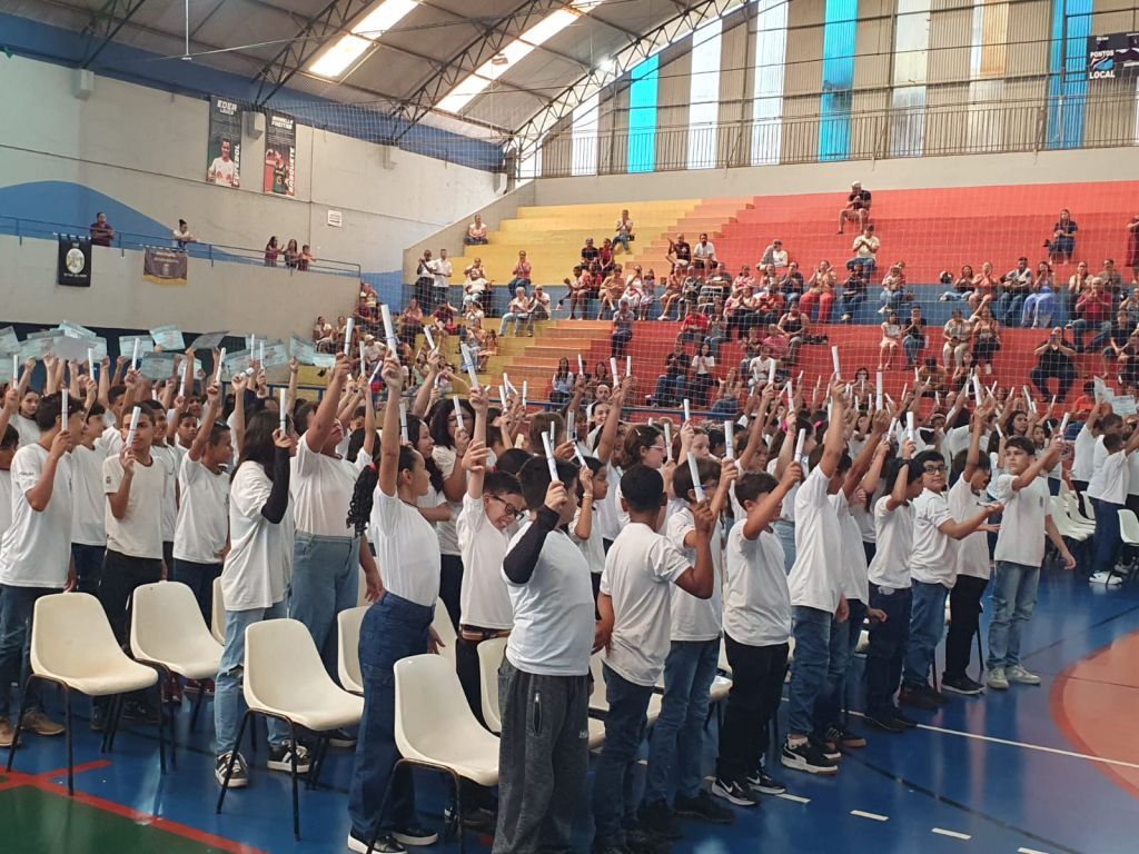 Em uma manhã marcada por alegria e emoção, o Ginásio de Esportes Sylvio Magalhães Padilha ficou lotado para a Formatura do Proerd, reunindo centenas de crianças, familiares, educadores, autoridades e representantes da Polícia Militar. O evento celebrou o encerramento de mais um ciclo de aprendizado, em que os alunos foram incentivados a fazer escolhas saudáveis, dizer não às drogas e à violência e fortalecer valores como respeito, cidadania e responsabilidade. Entre aplausos, apresentações e muita animação, o clima foi de orgulho e reconhecimento pelo esforço dos estudantes ao longo das aulas.