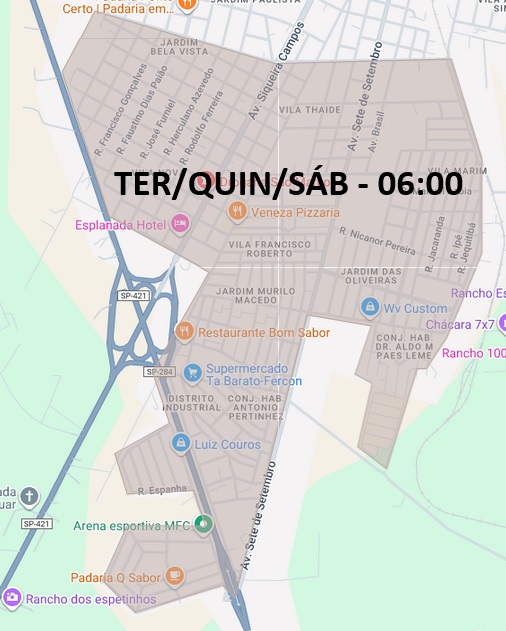 Jardim Bela Vista, Vila Athaíde, Vila Francisco Roberto, Jardim Murilo Macedo, Jardim das Oliveiras, Vila Marim, entre outros pontos (veja detalhes no mapa).