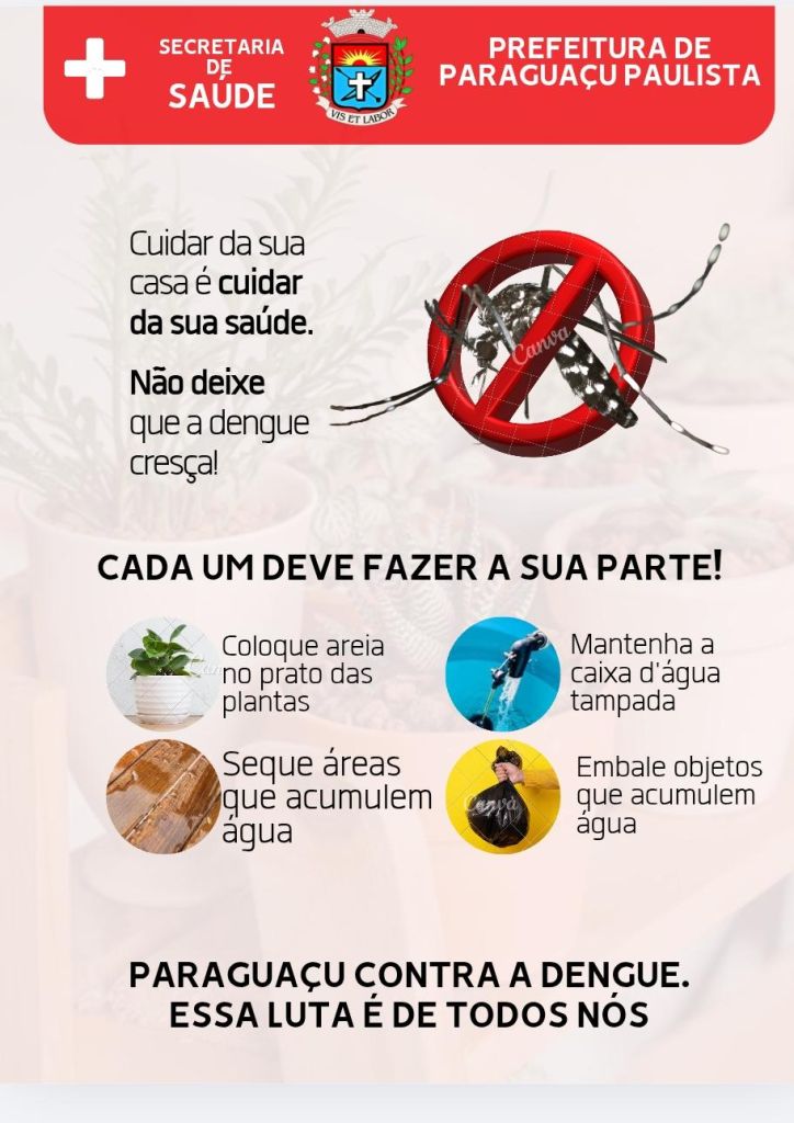 A Secretaria de Saúde reforça que o combate ao mosquito depende diretamente do envolvimento da população. A eliminação de focos é considerada a medida mais eficaz para evitar o avanço da dengue no município, especialmente durante o período chuvoso.