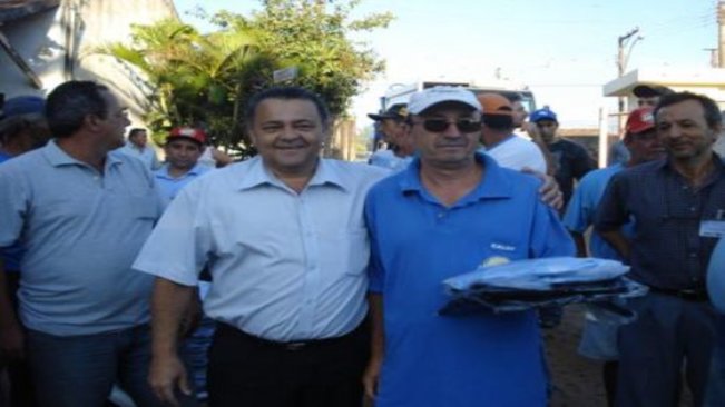 Como primeira atividade da abertura das festividades do aniversário de 85 anos da cidade, o prefeito - dr. Ediney Taveira Queiróz - fez a entrega dos uniformes aos funcionários do Departamento de Obras e Serviços Urbanos