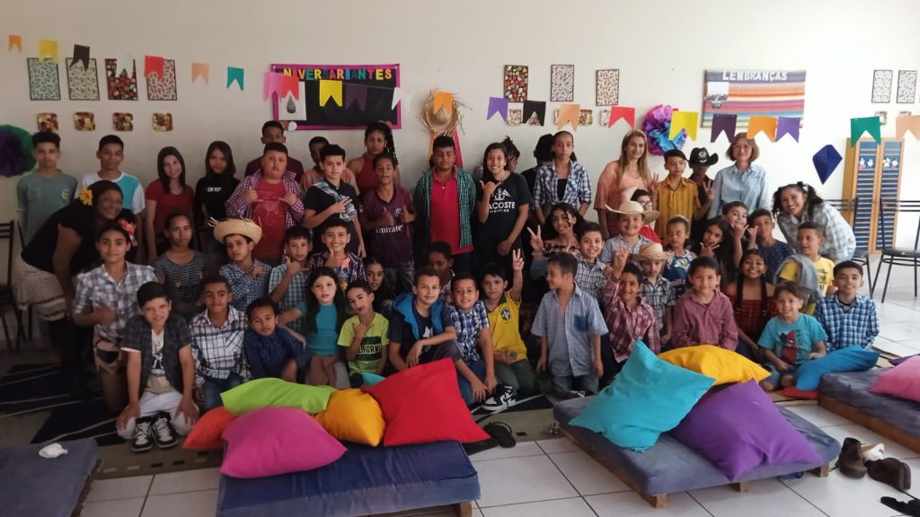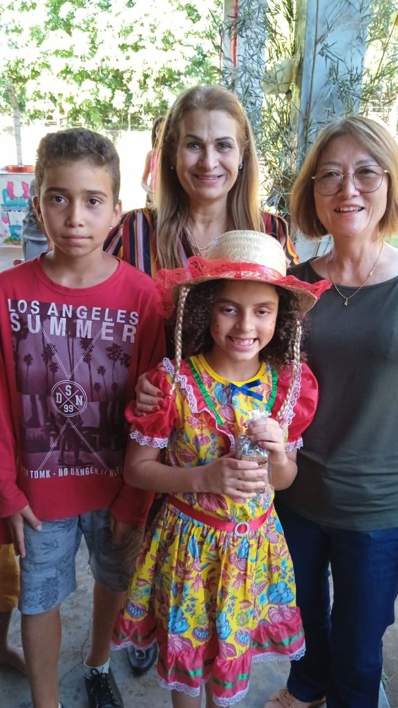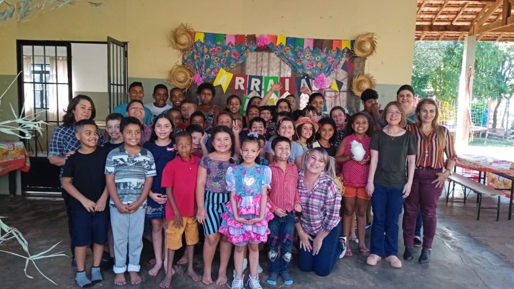 A criançada se divertiu bastante com quadrilha e brincadeiras, e se deliciou com comidas típicas, como pipoca, algodão-doce e refrigerante.