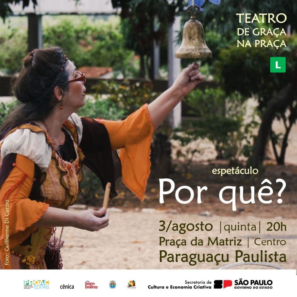 Com música, dança, bom-humor e poesia, a companhia Cênica, de São José do Rio Preto (SP), chega a Paraguaçu Paulista em agosto com sessões gratuitas dos espetáculos infanto-juvenis “Por quê?” e “Oi Lá, Inezita”. O primeiro será no dia 3, quinta-feira, às 20h, na Praça da Matriz, no Centro, e o segundo, no dia 4, sexta-feira, no mesmo horário, no Cine Teatro Lucila Nascimento, Centro, esse último com tradução em libras.