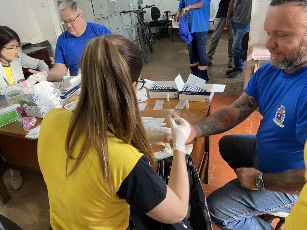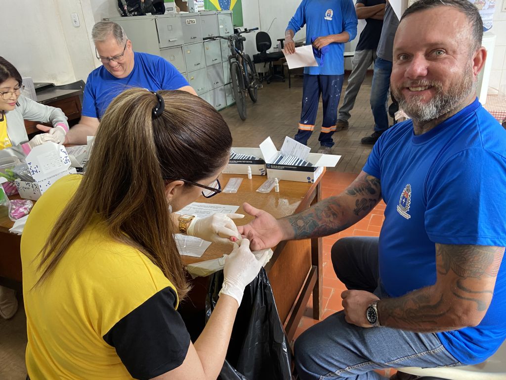 Durante a ação no Departamento de Obras, foram realizados exames de hepatites B e C, sífilis e HIV nos servidores do setor, que receberam orientações e kits de prevenção. Na ocasião, foram realizados aproximadamente 200 testes rápidos.