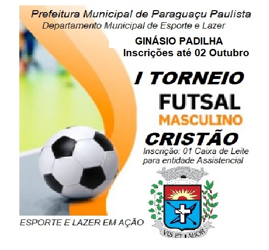 A Prefeitura Municipal de Paraguaçu Paulista, por meio do Departamento Municipal de Esporte e Lazer, está com inscrições abertas para o 1º Torneio de Futsal Masculino Cristão.