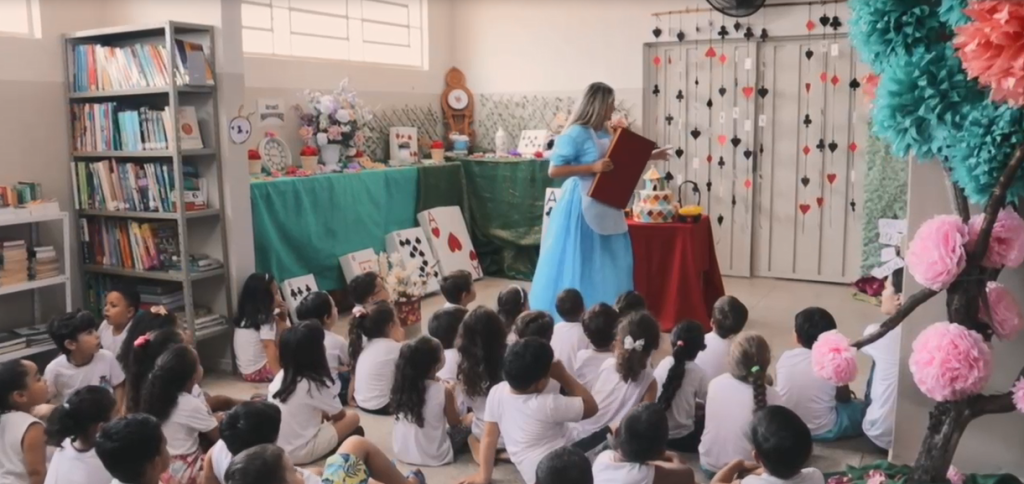 A atividade foi organizada pela equipe da biblioteca, composta pela bibliotecária Amanda Martins, pela professora Valéria Marini e pelas colaboradoras Ana Paula Faustino e Rita de Cássia Santos Aniceto e teve a participação especial da professora Sandra Tota e sua equipe, que apresentaram uma esquete da história ‘Alice no País das Maravilhas’.