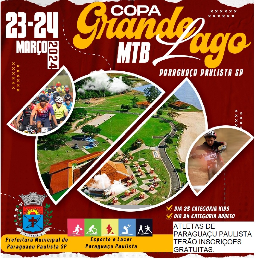 A Prefeitura Municipal da Estância Turística de Paraguaçu Paulista, através do Departamento Municipal de Esporte e Lazer, realizará nos dias 23 e 24 de março a COPA GRANDE LAGO de Mountain Bike, evento que fará parte do calendário oficial do aniversário da cidade.