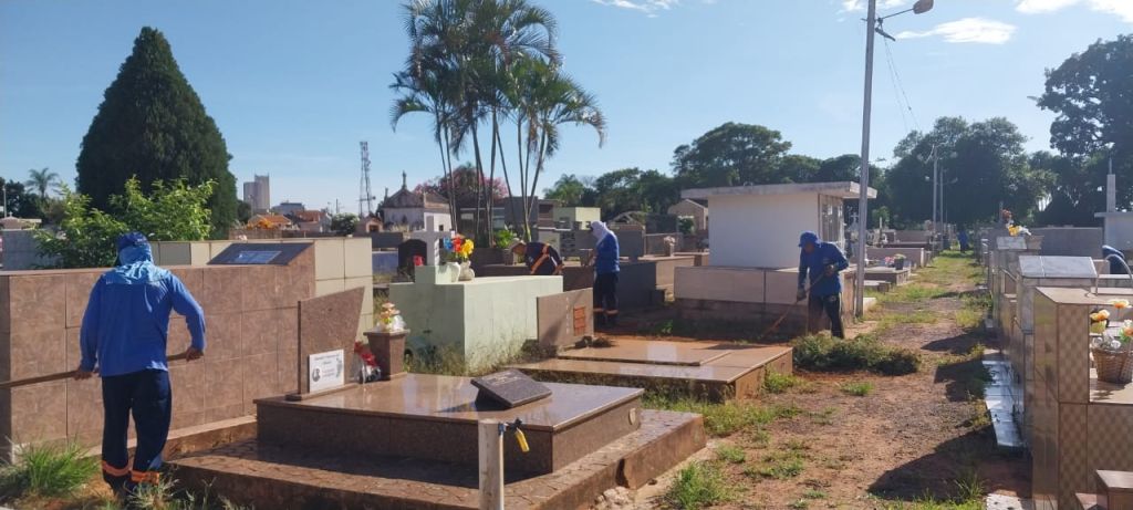 Durante a ação, a equipe da Divisão de Cemitérios e Serviços Funerários, que realiza a manutenção e limpeza do espaço periodicamente, contou com o auxílio de profissionais do Departamento de Obras e Serviços Urbanos e do Departamento de Saúde.