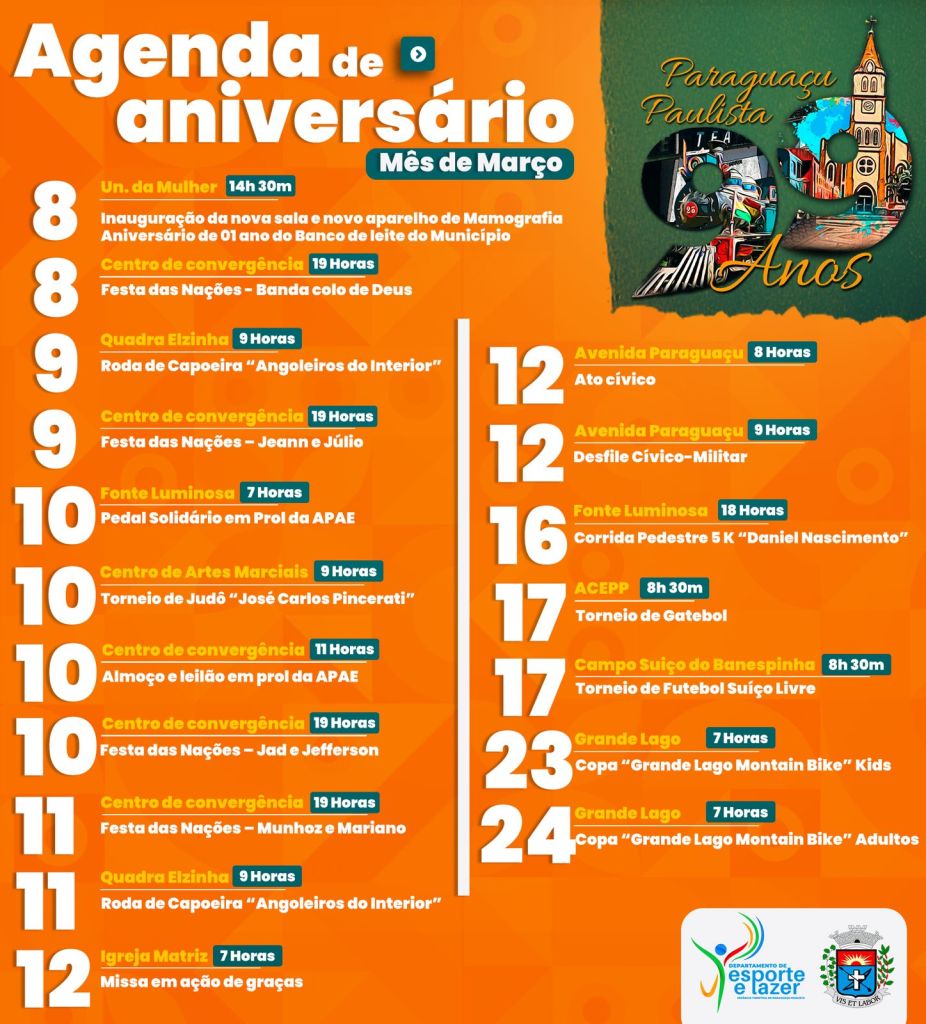 Prefeitura Municipal divulga programação para o aniversário de Paraguaçu Paulista