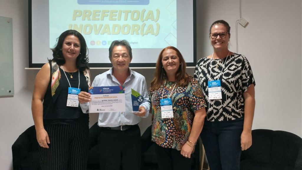 O prefeito de Paraguaçu Paulista, Antônio Takashi Sasada, recebeu nesta quarta-feira, dia 3, na FEMA, em Assis, o Prêmio de Prefeito Inovador 2024 durante o Fórum Regional de Cidades Digitais e Inteligentes.