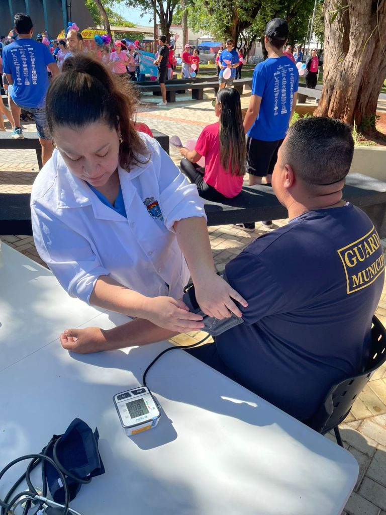Ao chegar ao destino final da corrida, uma equipe do Departamento de Saúde estava aguardando os participantes da caminhada, que puderam aferir pressão, fazer teste de glicemia, colocar em dia as vacinas, fazer teste rápido e receber orientações de fisioterapia, odontologia, nutrição e saúde mental, além de uma palestra com orientações de saúde para homens e mulheres.