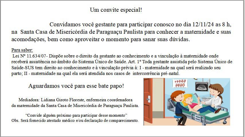 A visita e bate-papo serão mediados pela Lidiana Giroto Floreste, enfermeira coordenadora da maternidade da Santa Casa.