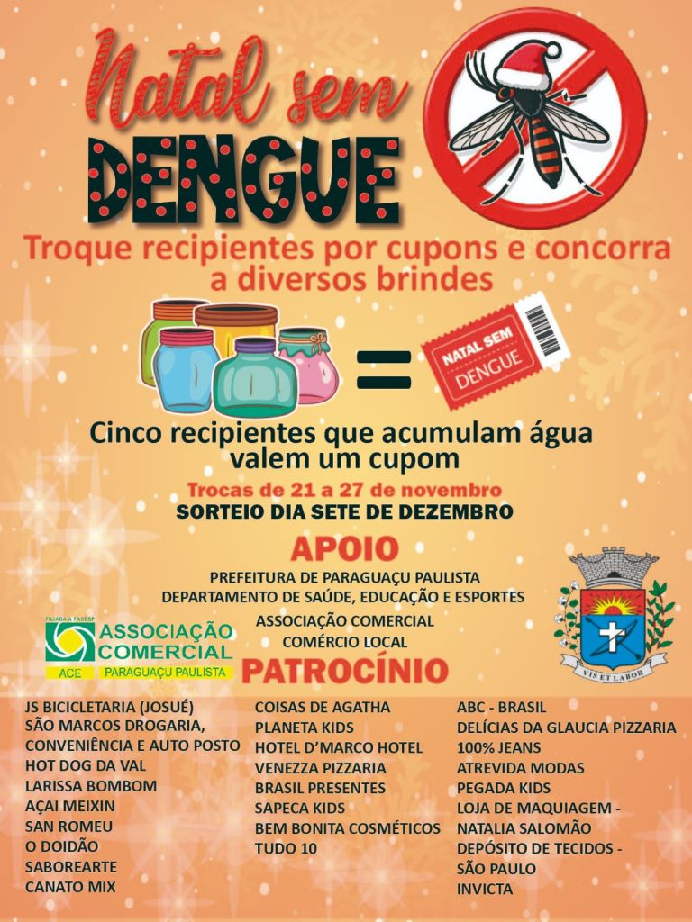 Essa mobilização é fundamental para proteger a saúde da população e prevenir surtos de Dengue na região. Todos ganham: a cidade se torna mais saudável e a população têm a chance de ganhar brindes incríveis! Participe dessa campanha e ajude a combater a Dengue! Juntos, podemos fazer a diferença!
