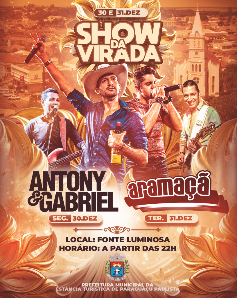 No dia 30/12, às 22h, haverá show imperdível com Antony e Gabriel, trazendo o melhor do sertanejo para aquecer a noite!