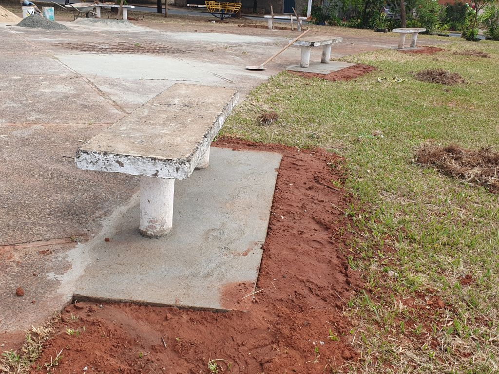 Na manhã desta quinta-feira (16), equipes operavam na concretagem da base dos bancos, para dar mais conforto e segurança à comunidade que usufrui do espaço.