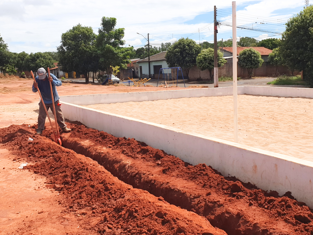 A quadra de areia feita pela Prefeitura de Paraguaçu Paulista, através do Departamento de Esportes e Lazer, na praça pública do Conjunto Habitacional Mário Covas está ganhando rede elétrica para iluminação. Na manhã desta terça-feira (28), uma equipe estava no local trabalhando na ligação do padrão de energia e também na colocação subterrânea das mangueiras, que irão conectar a fiação até os postes de iluminação.