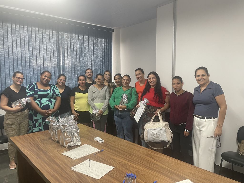 Para comemorar o Dia da Mulher, a diretora distribuiu uma caixa de chocolate para cada participante. Os encontros acontecem todas as terças-feiras no Departamento de Assistência Social e são destinados a gestantes, puérperas (mães recentes) e suas redes de apoio. Vale lembrar que o horário foi alterado das 8h para as 8h30 para evitar conflitos com consultas das gestantes na Unidade da Mulher.