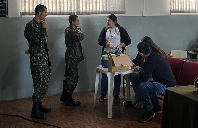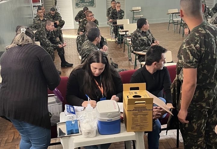 Após as palestras, a equipe do SAE CTA ofereceu aos atiradores a oportunidade de realizar testes rápidos e sigilosos para detecção de HIV e sífilis. A testagem rápida é uma ferramenta fundamental para o diagnóstico precoce, permitindo o início imediato do tratamento e a interrupção da cadeia de transmissão dessas infecções. Simultaneamente, a equipe da Vigilância em Saúde realizou a atualização da carteira de vacinação dos atiradores, garantindo a proteção contra diversas doenças preveníveis por meio da imunização. Esta ação contribui para a saúde individual e coletiva, fortalecendo a cobertura vacinal no município.