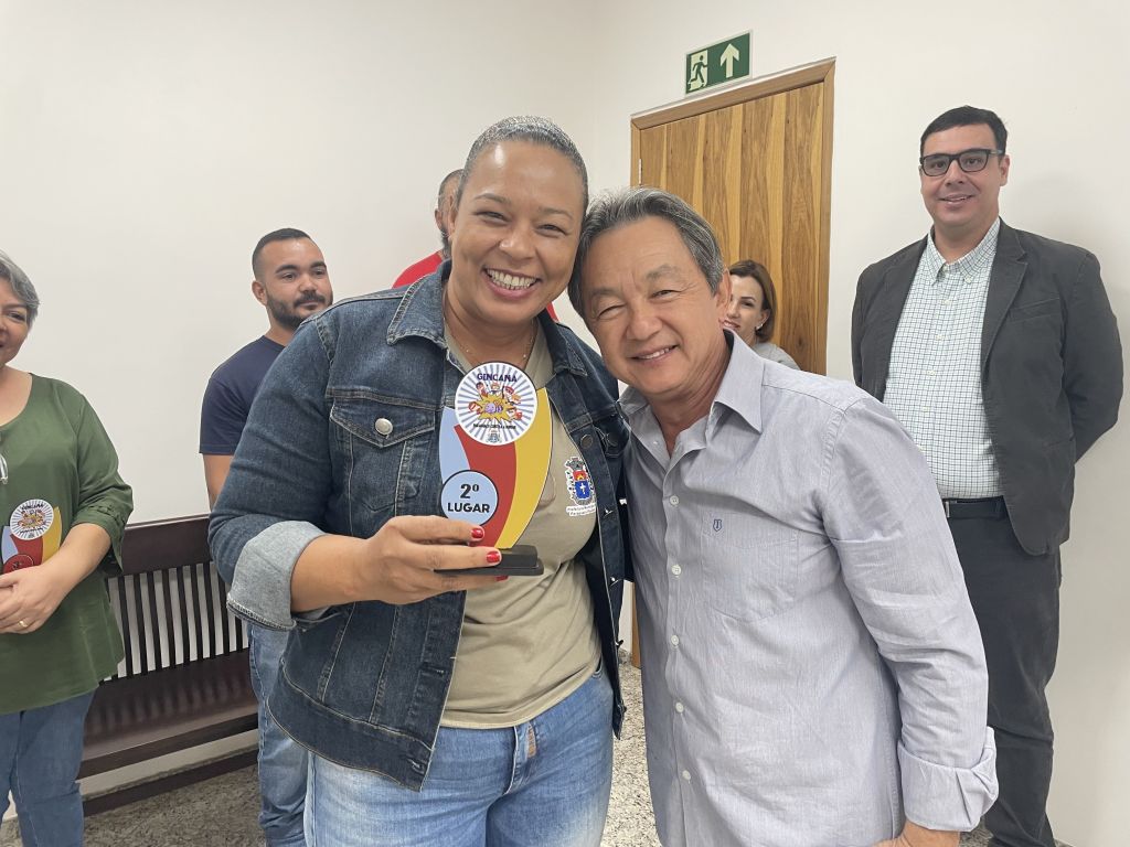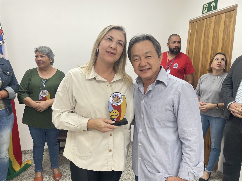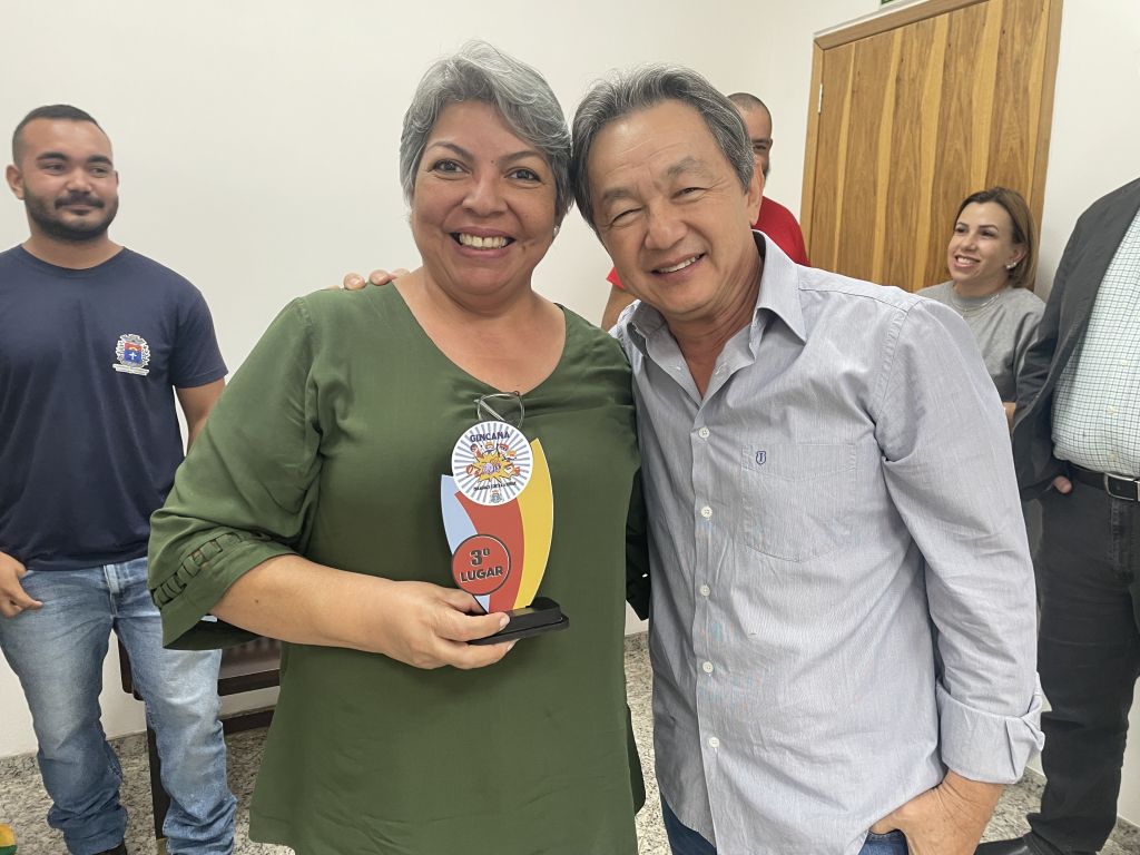 Representantes das três escolas que se destacaram na "Gincana Paraguaçu Contra a Dengue" foram recebidos hoje, na Prefeitura Municipal, pelo prefeito Antonio Takashi Sasada, Antian. A iniciativa, que mobilizou a comunidade escolar e resultou na impressionante coleta de aproximadamente 20 bagues de recipientes com potencial para se tornarem criadouros do mosquito Aedes Aegypti, teve seu ápice com a entrega dos troféus. Acompanharam o prefeito na cerimônia a coordenadora da Vigilância em Saúde do município, Iraciana Messias de Paiva, com sua equipe, agentes de saúde e o secretário de Saúde, Egydio Tonini Nogueira Neto, que também reconheceram o esforço e a dedicação das escolas participantes.