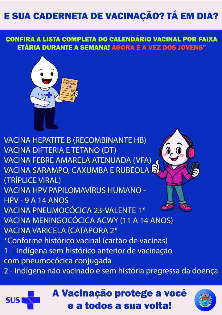 A Secretaria de Saúde de Paraguaçu Paulista reforça a importância de verificar a caderneta de vacinação e procurar a Estratégia Saúde da Família (ESF) ou Unidade Básica de Saúde (UBS) mais próxima para atualizar qualquer vacina que esteja atrasada. Manter a imunização em dia é um ato de autocuidado e um gesto de responsabilidade com a saúde coletiva.