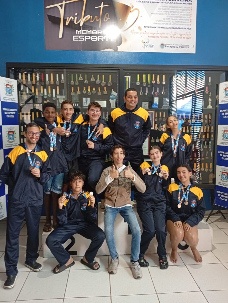 A equipe de Natação da Secretaria Municipal de Esportes e Lazer de Paraguaçu Paulista brilhou na V etapa da Liga Paulista de Natação, realizada no último final de semana, na Piscina Municipal “Orivaldo Pereira Oliveira”. Com nove atletas finalistas, o time conquistou 13 medalhas e bateu o recorde da temporada até o momento, mesmo ainda restando etapas até o fim do ano. O resultado expressivo reforça o bom desempenho do projeto, que em apenas cinco meses já demonstra resultados promissores e consolida a força da natação local.