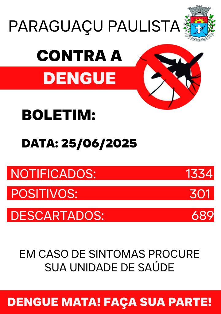Este panorama contrasta fortemente com os dados alarmantes de 2024, quando, na mesma data, Paraguaçu Paulista enfrentava 1.781 casos positivos, 869 descartados e 3.650 notificações de dengue. A redução expressiva reflete o esforço conjunto da população e das ações de saúde no combate ao mosquito Aedes aegypti.