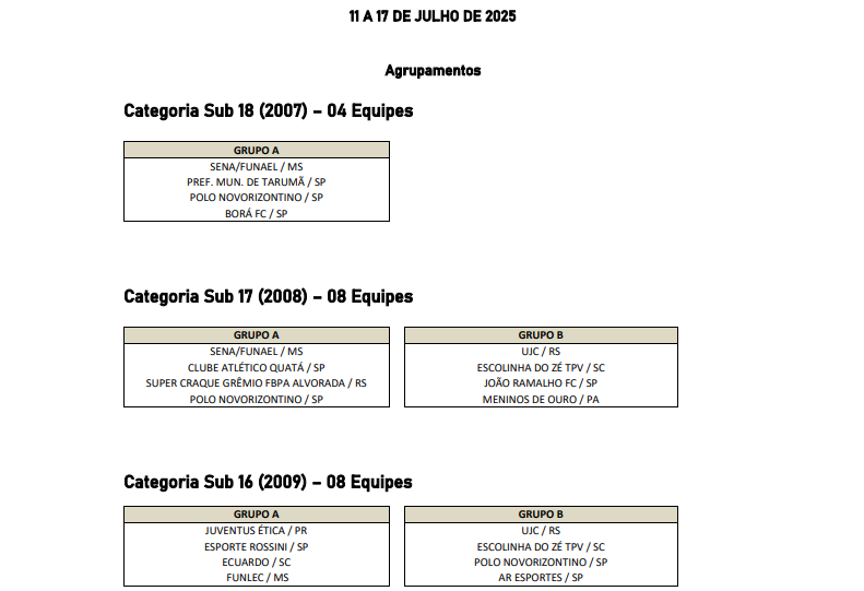 Além da prática esportiva, o torneio deve gerar impacto positivo na economia local, com expectativa de aquecimento no comércio e no setor de serviços.