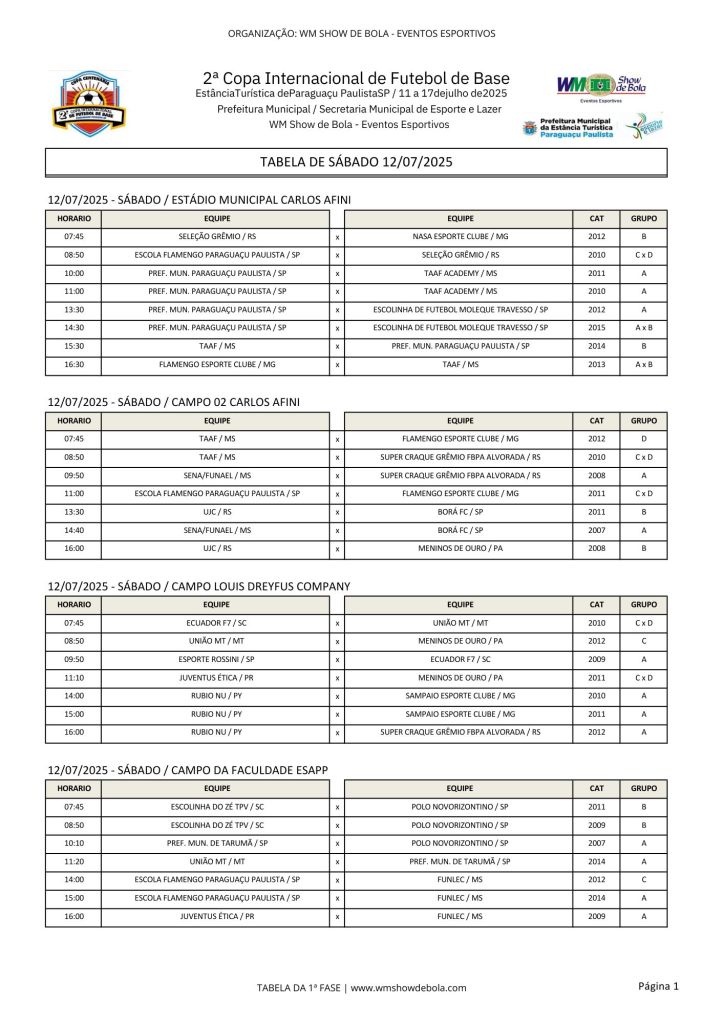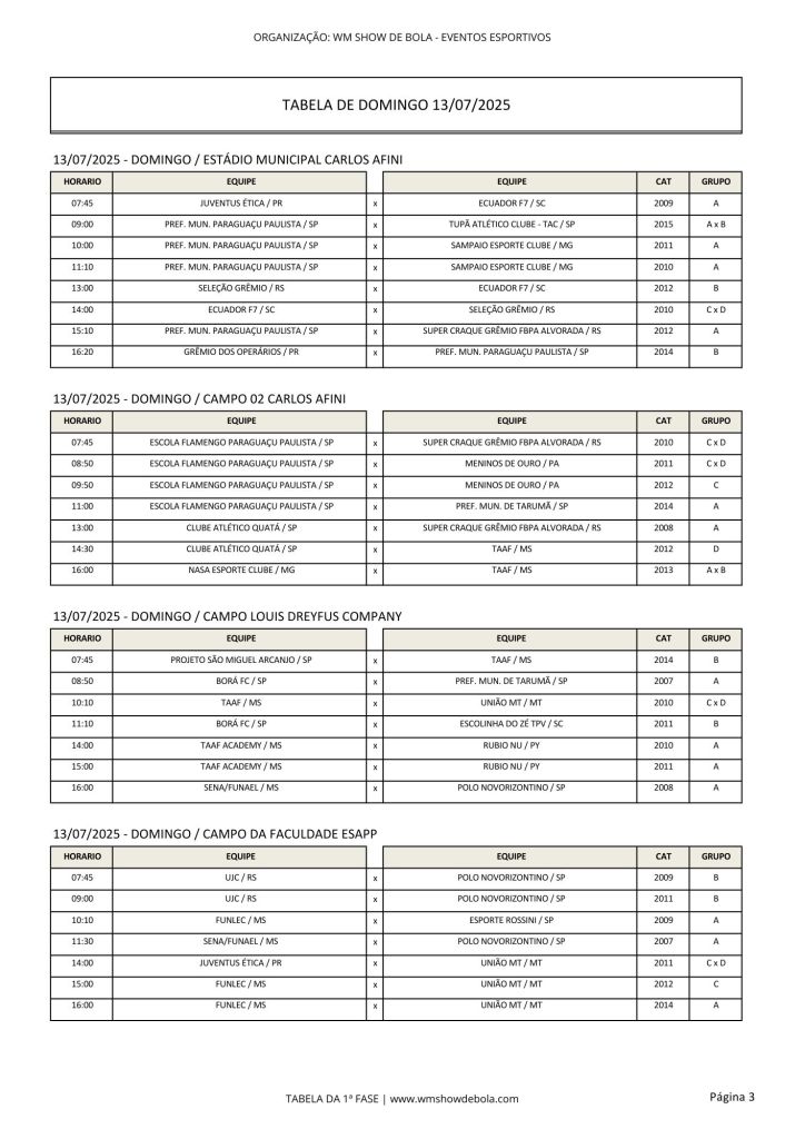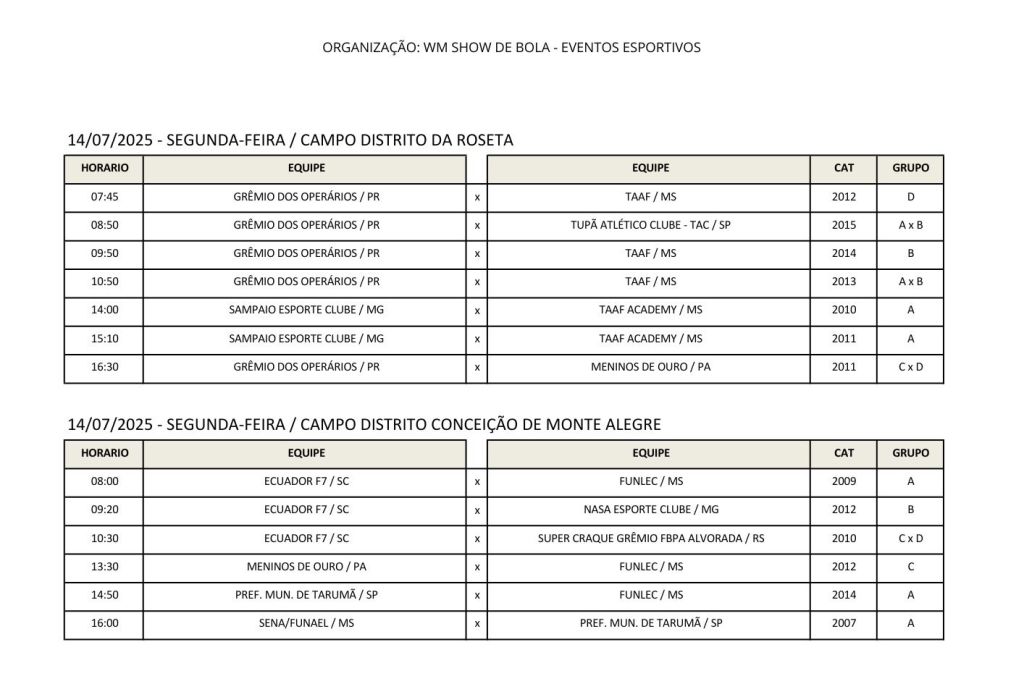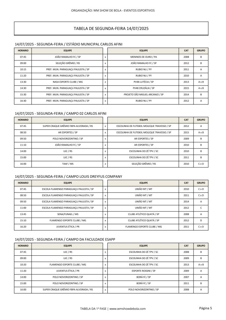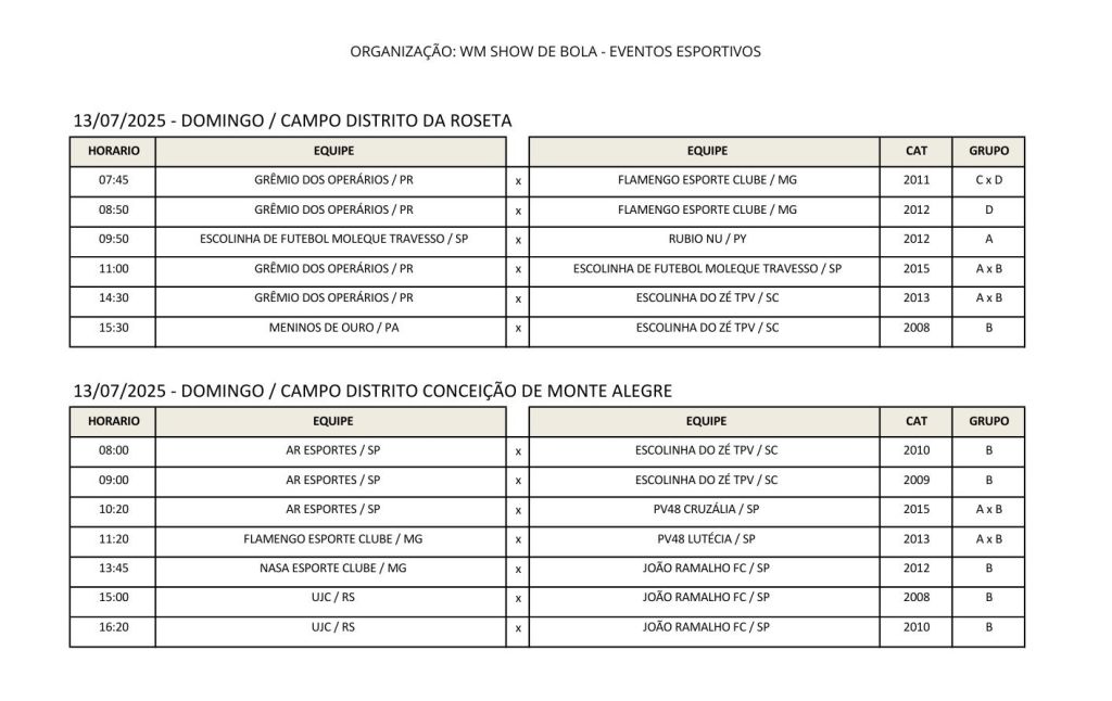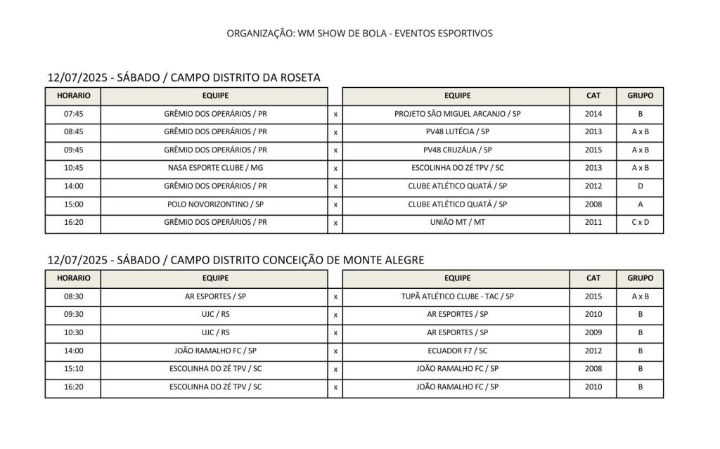 O evento será realizado entre os dias 11 e 17 de julho em 6 campos de futebol. Cerca de 2,5 mil atletas participarão do eventos esportivo, que promete agitar a cidade. Lembrando que a abertura oficial da 'Copa' acontece hoje à noite no Ginásio Padilha.