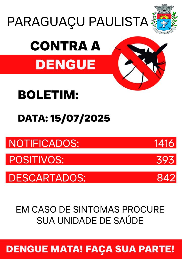 É fundamental que a população esteja atenta aos sintomas da dengue, que podem variar de leves a graves. Em caso de qualquer sinal, procure imediatamente a unidade de saúde mais próxima para diagnóstico e orientação.