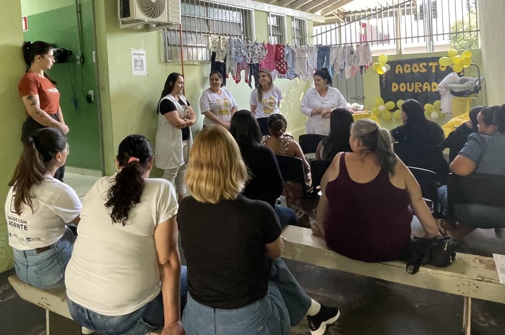 Em mais uma ação de sua agenda de visitas às unidades de saúde, a equipe do Programa Maternidade Real esteve na manhã desta sexta-feira na Estratégia Saúde da Família (ESF) I Barra Funda. A iniciativa, fruto da parceria entre a Secretaria de Saúde da Prefeitura Municipal de Paraguaçu Paulista e a Santa Casa, tem levado encontros informativos diretamente aos bairros para gestantes e acompanhantes. Aproveitando o Agosto Dourado, mês de conscientização sobre o aleitamento materno, as profissionais abordaram as vantagens do aleitamento materno exclusivo. A fonoaudióloga Isabela Le Fosse, a fisioterapeuta Lívia Rebello, e a enfermeira Sandra Regina de Oliveira, que também coordena o Posto de Coleta de Leite Humano, destacaram os benefícios para o desenvolvimento da musculatura facial e da fala do bebê, além do ganho de anticorpos, o que resulta em crianças mais saudáveis.
