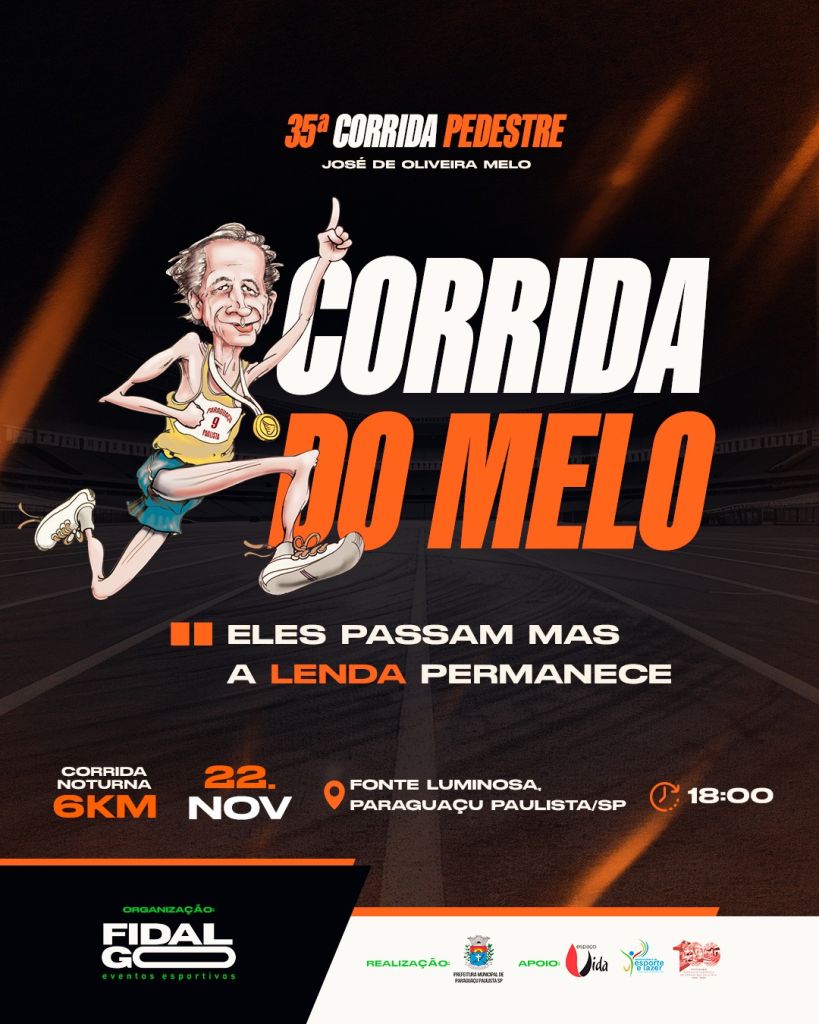 A Prefeitura de Paraguaçu Paulista, por meio da Secretaria Municipal de Esportes e Lazer, anuncia a realização da 35ª edição da tradicional Corrida Pedestre Noturna “José de Oliveira Melo”, um dos eventos esportivos mais aguardados do calendário municipal. A prova integra as festividades em comemoração aos 100 anos de Paraguaçu Paulista, reunindo corredores locais e regionais, além de admiradores do esporte que acompanham o percurso pelas ruas da cidade.