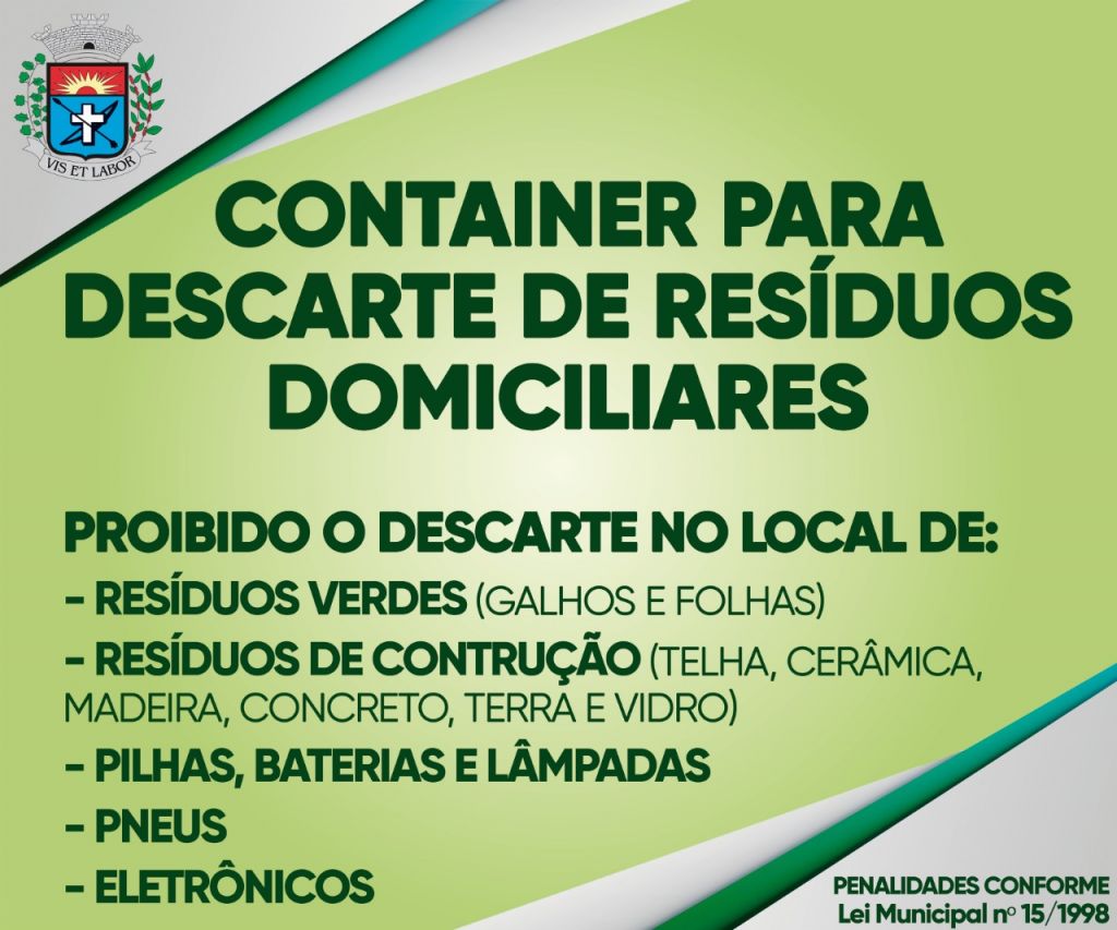 A Administração Municipal informa que a coleta de lixo é feita constantemente no local. Na última segunda-feira (8), o departamento de Agricultura e Meio Ambiente fez a limpeza das imediações do container e foi registrada uma grande quantidade de resíduos jogados de forma irregular.