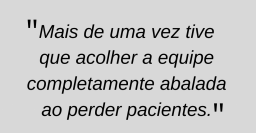 Atender dentro da UTI fez com que Iris presenciasse momentos de muita dor. "Mais de uma vez tive que realizar acolhimento a equipe ao ver profissionais completamente abalados e muito sensibilizados ao perder pacientes", revela.