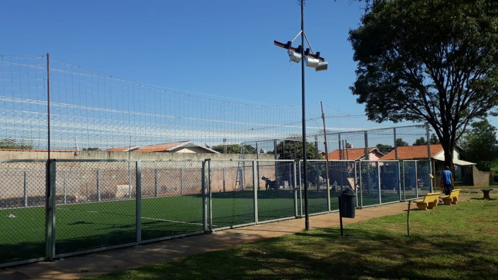 O Departamento Municipal de Esporte e Lazer realizou na última semana a cobertura com rede na quadra de futebol society "Olivar Machado (Machadinho), no conjunto habitacional Lina Leuzzi.
