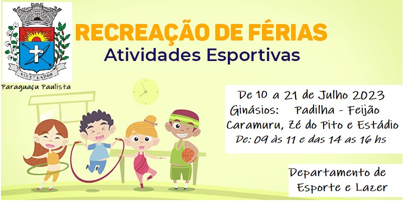 A Prefeitura Municipal de Paraguaçu Paulista, por meio do Departamento Municipal de Esporte e Lazer vai promover, a partir do próximo dia 10 de Julho (Segunda-feira), diversas recreações destinadas ao público infantil e adolescentes de Paraguaçu Paulista.